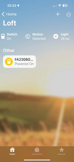 Installation should be as simple as adding an API Key for your GivEnergy Account, the inverter will be added and should then be seen in your home app. It is recomended to create an room just for you solar install. Below are screenshots showing what this will look like.